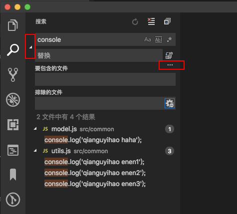 Cmd + Shift + F(Win用户是Ctrl + Shift +F):在全局的文件夹中进行搜索。效果如下: