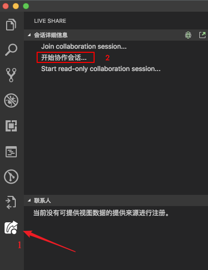 打开插件管理,搜索“live share”,安装。安装后重启 VS Code,在左侧会多出一个按钮: