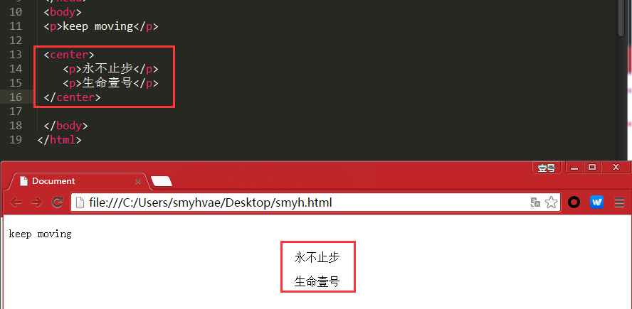 2、align="center":图片和文字水平方向上居中对齐。显示效果: