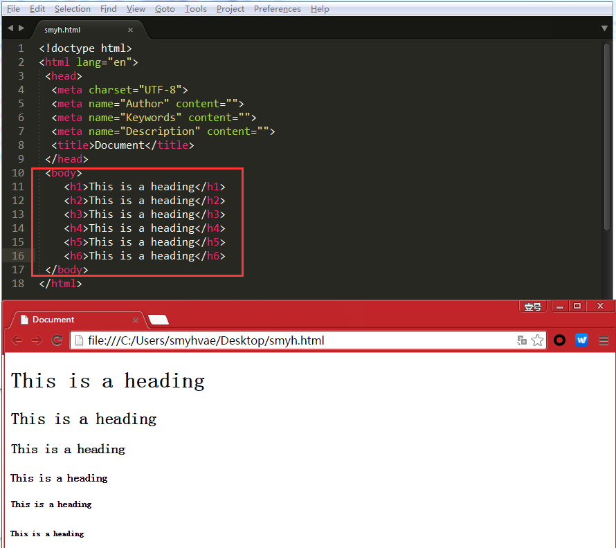 html是一个纯本文文件(就是用txt文件改名而成),用一些标签来描述文字的语义,这些标签在浏览器里面是看不到的,所以称为“超文本”,所以就是“超文本标记语言”了。 所以,接下来,我们肯定要学习一堆html中的标签对儿,这些标签对儿能够给文本不同的语义。