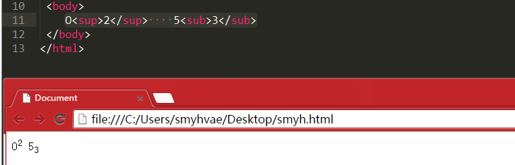 <sup> 下标<sub>上小标这两个标签容易混淆,怎么记呢?这样记:b的意思是bottom:底部 举例: