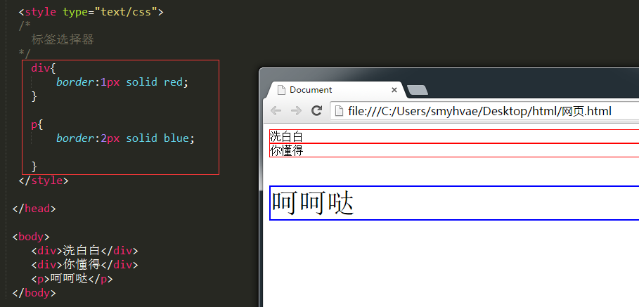 我们写css的地方是style标签,就是“样式”的意思,写在head里面。后面的课程中我们将知道,css也可以写在单独的文件里面,现在我们先写在style标签里面。