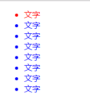 现在我要让一个列表实现上面的这种样式:第一个li为红色,剩下的li全部为蓝色。