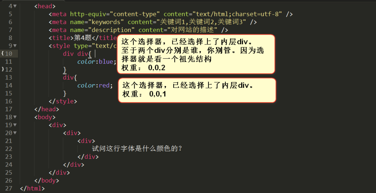 CSS的层叠性讲完了,我们来做几个题目吧。
