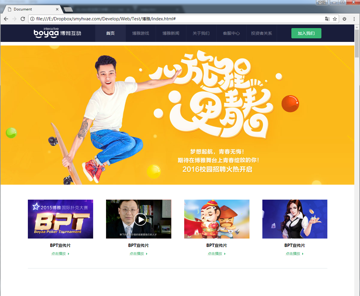CSS已经学了一些基础内容了,我们来讲解一个小案例吧。以博雅互动的官网首页举例。