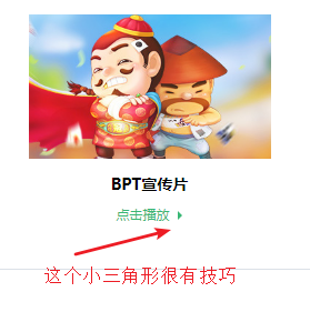 我们在“点击播放”的右侧放了一个三角形。这个很有技巧。