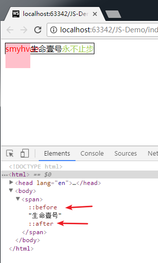 通过伪元素选择器,就可以添加出类似于span标签的效果(记得要结合 content 属性使用)。