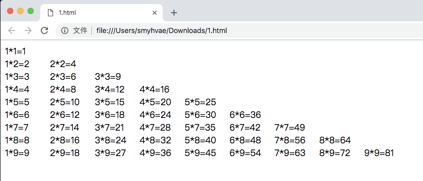 练习三:99乘法表