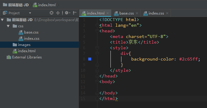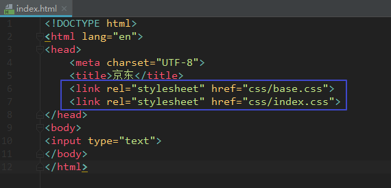 注意,base.css和index.css的书写顺序不能颠倒,因为是按照书写顺序,从上往下进行加载的。