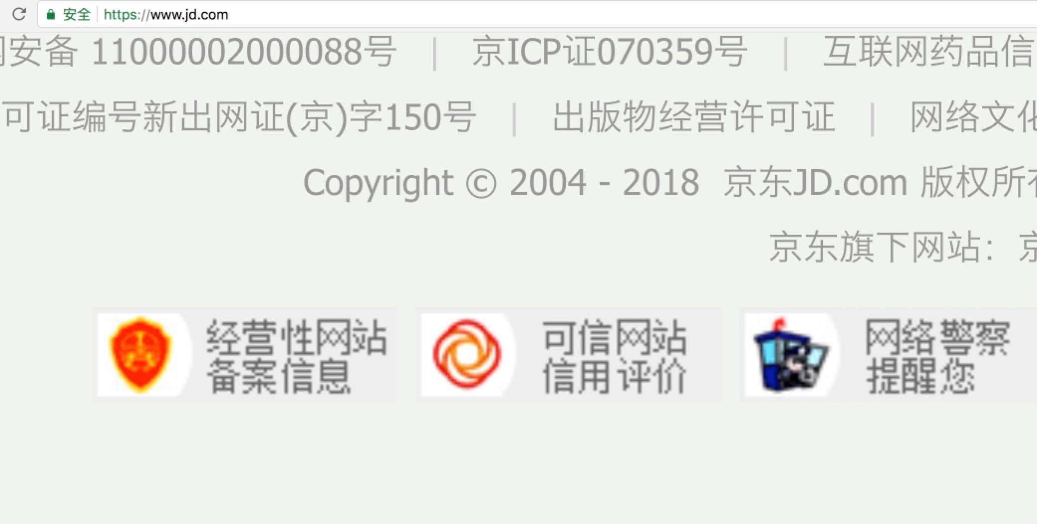 你去京东官网看看,发现最最底部的文字竟然是图片: