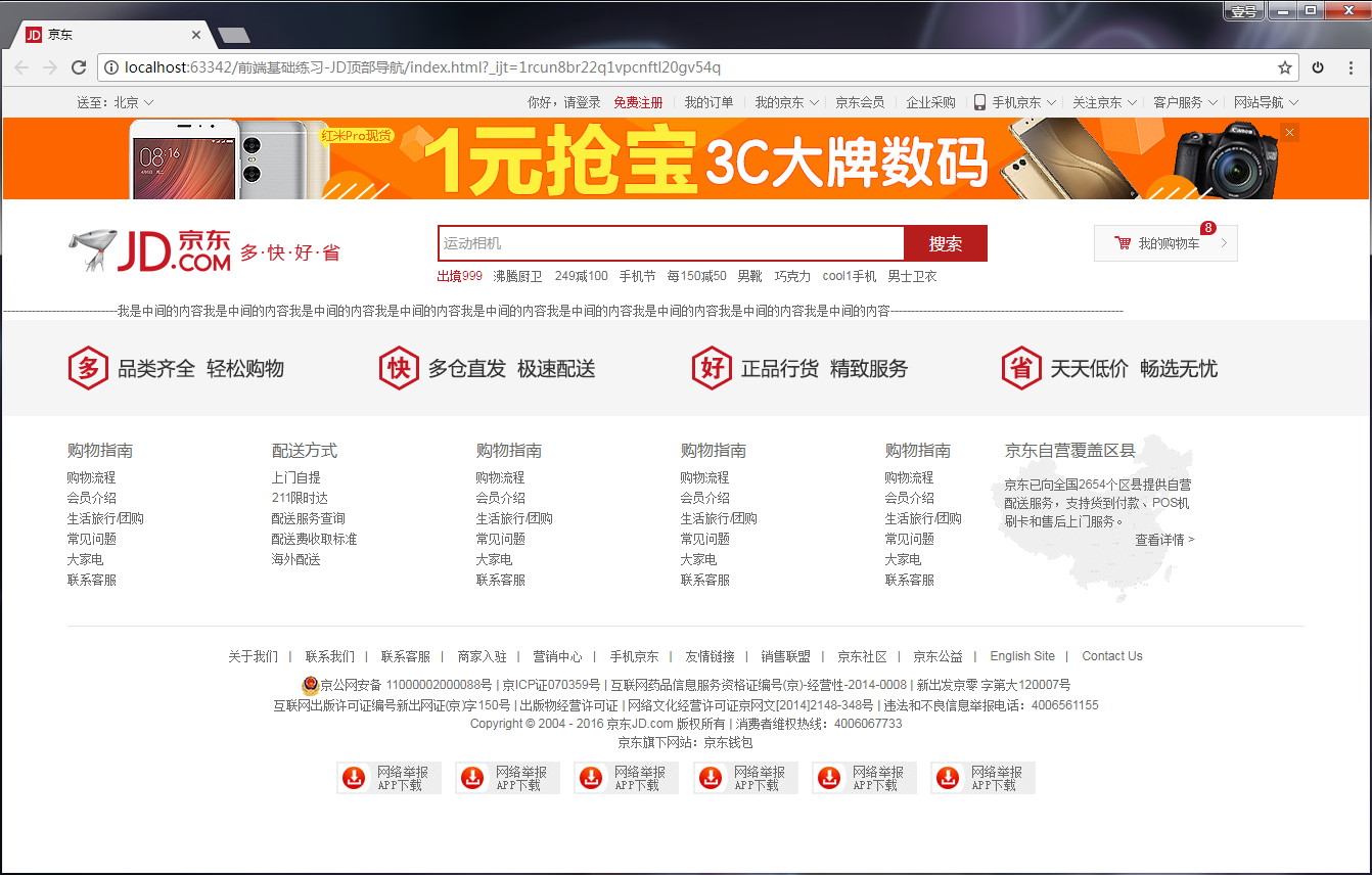 01-CSS基础练习:JD首页的制作(顶部和底部)