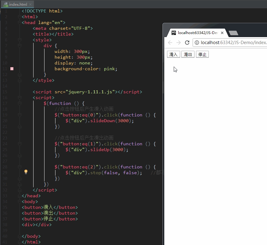 如果去掉stop()函数,效果如下:(不是我们期望的效果)