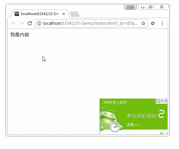 解释:和方式二类似,也是通过控制元素的宽高、透明度、display属性,逐渐显示。