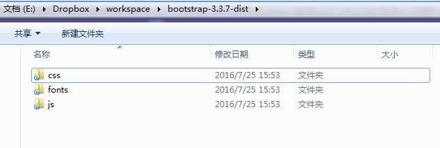 下载之后,解压 bootstrap-3.3.7-dist ,有三个文件夹:
