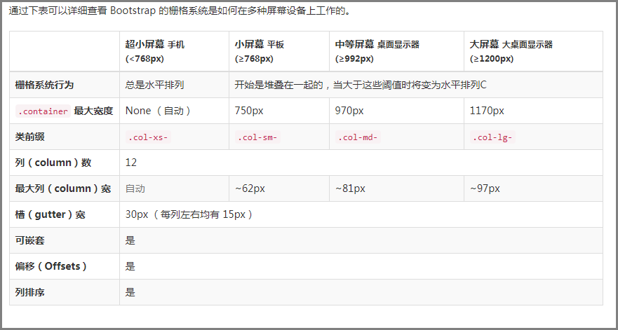 我们尤其要记住各个屏幕的尺寸和类前缀。
