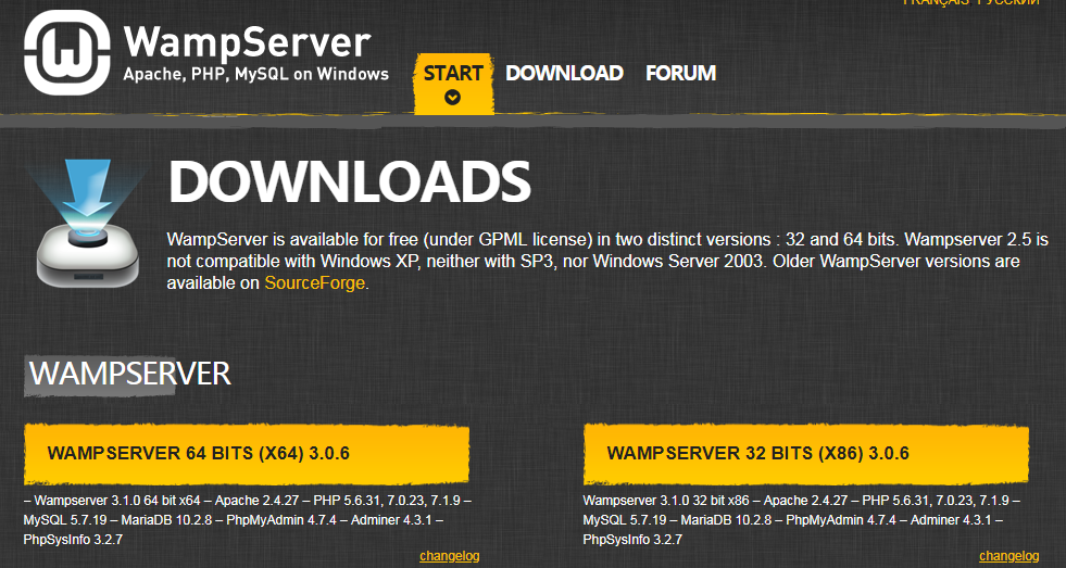 去 WampServer 的官网下载软件。
