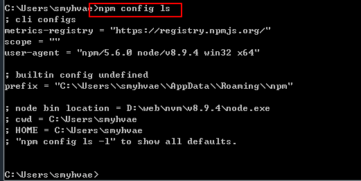(2)输入 nvm ls,查看已安装的所有 node 版本。