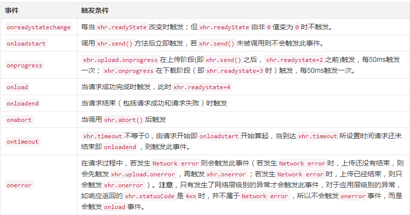 XMLHttpRequest有很多触发事件,每个事件是怎么触发的。